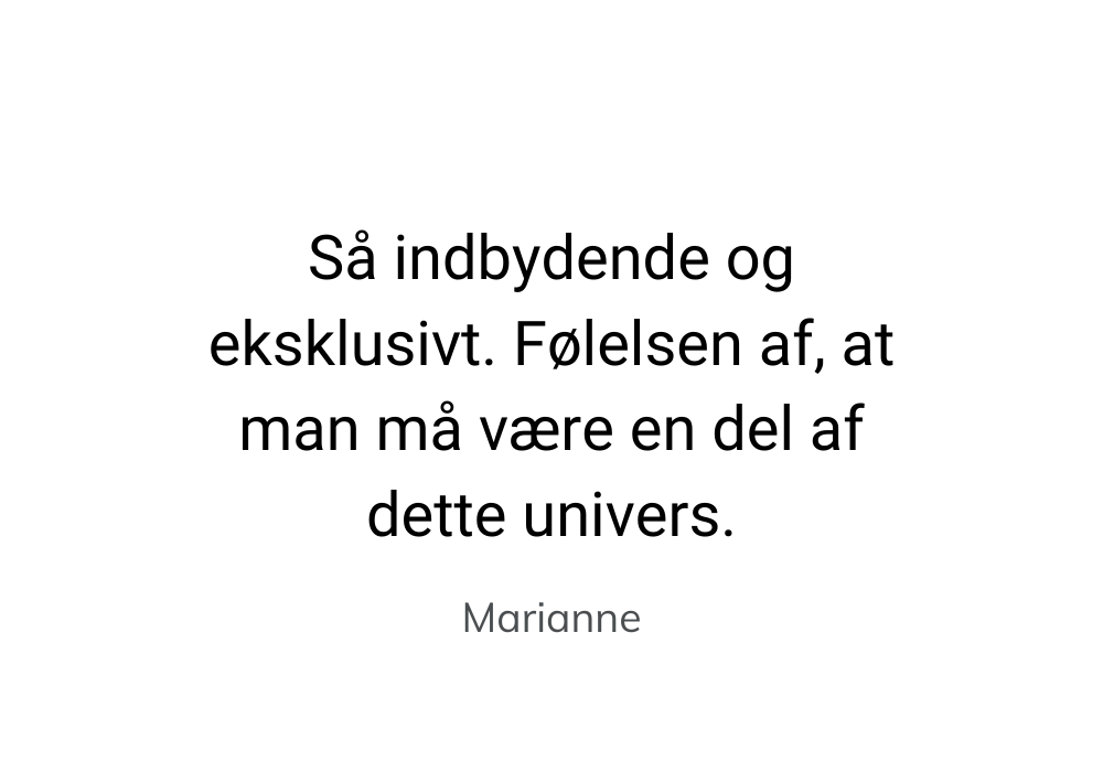 Jeg har længe haft lyst til lave et helt eksklusivt program for mine bedste kunder: et lidt mere luksuriøst koncept, hvor jeg har mulighed for at forkæle inderkredsen med små gaver og overraskelser i løbet af året og forstærke det gode fællesskab, vi har.