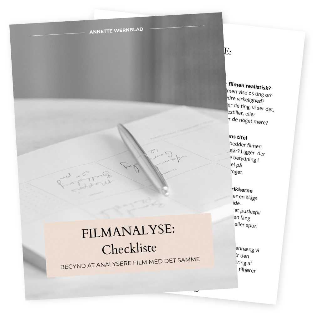 De gode nyheder er, at med min A4-checkliste, får du en struktur til din analyse, som du kan begynde at bruge om nogle få minutter. Indtast blot dit navn og din email-adresse, så får du med det samme adgang til dette ene ark, som giver dig nogle redskaber, så du kan begynde at analysere film og få meget mere ud af dem.